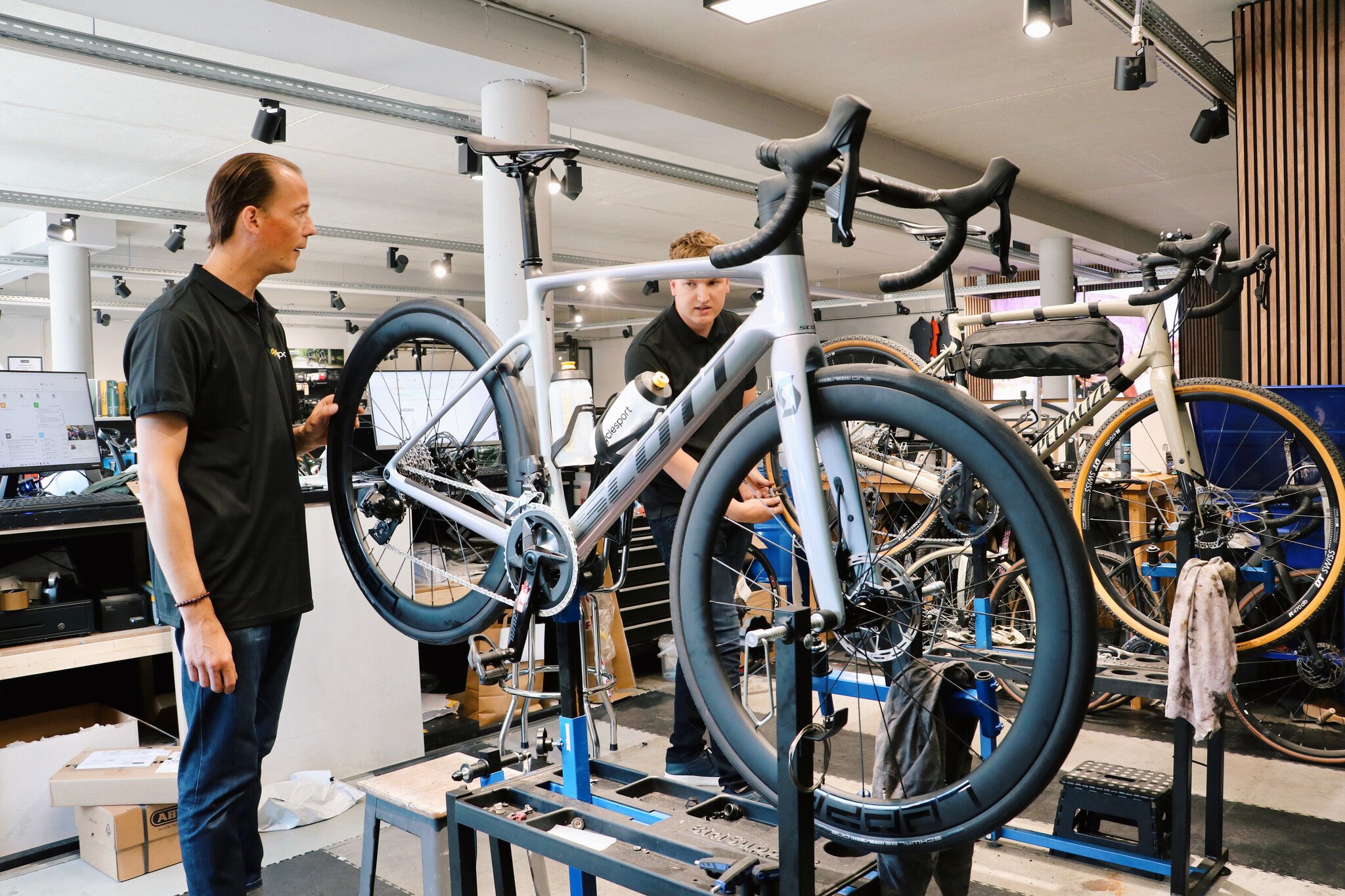 Cyclesport in Apeldoorn beschikt over een team van vakspecialisten die expertise hebben op het gebied van verschillende fietscategorieën, zoals racefietsen, gravelfietsen, mountainbikes en baanfietsen. Of je nu een fanatieke wielrenner bent die zijn racefiets in topconditie wil houden, of een avontuurlijke fietser met een gravelfiets of mountainbike, de technici van Cyclesport hebben de kennis en ervaring om elk type fiets perfect af te stellen en te onderhouden. Ze voeren onderhoud en reparaties uit voor