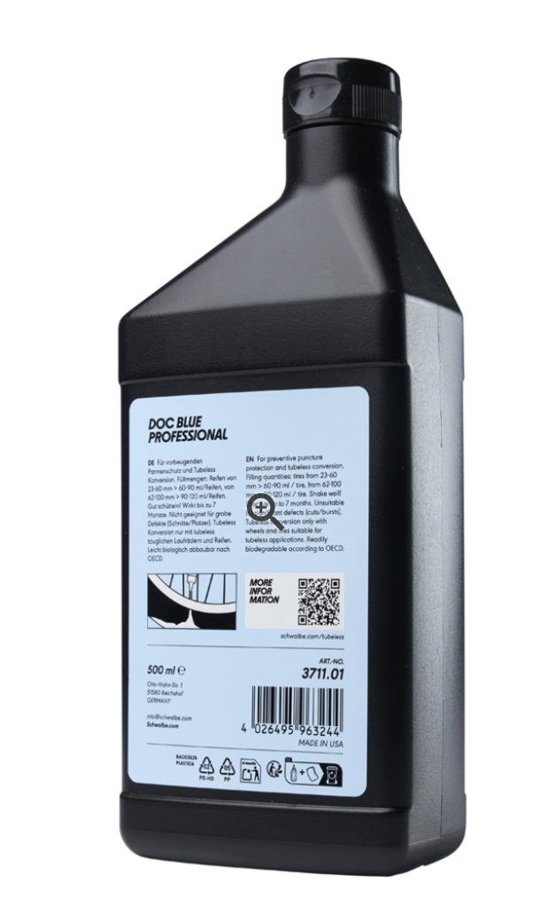Doc Blue Professional is onze aanbeveling voor gebruik met Schwalbe TLE/TLR banden en garandeert eenvoudige verwerking en optimale, snelle afdichting.