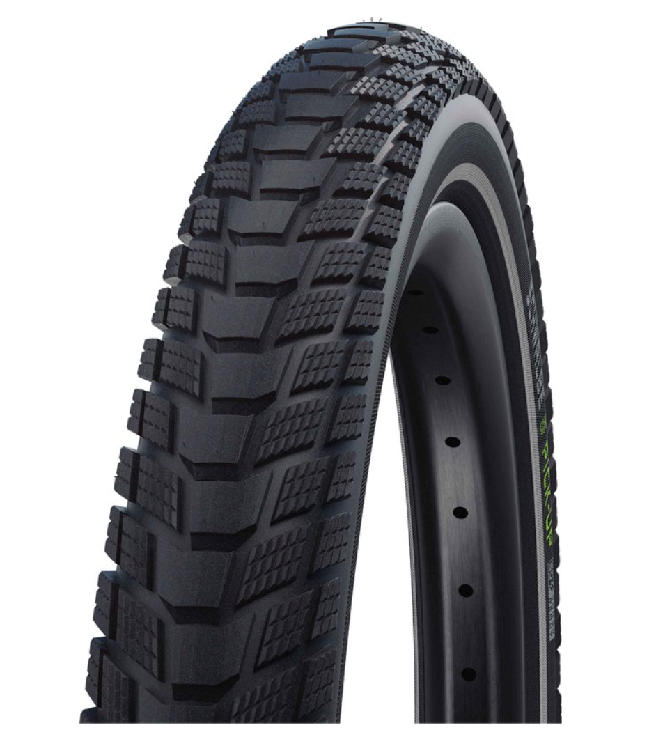 Dankzij zijn extreem stabiele dubbele karkas, wordt de Schwalbe Pick-Up een echte pakezel en biedt tegelijkertijd een uitstekende lekbescherming. Daarbij zorgt het ADDIX E compound voor buitengewoon goede rijprestaties en grip, zelfs in de 20 uitvoering. Met de ECE-R75 certificering is de Schwalbe Pick Up de optimale keuze voor alle e-cargo bikes.